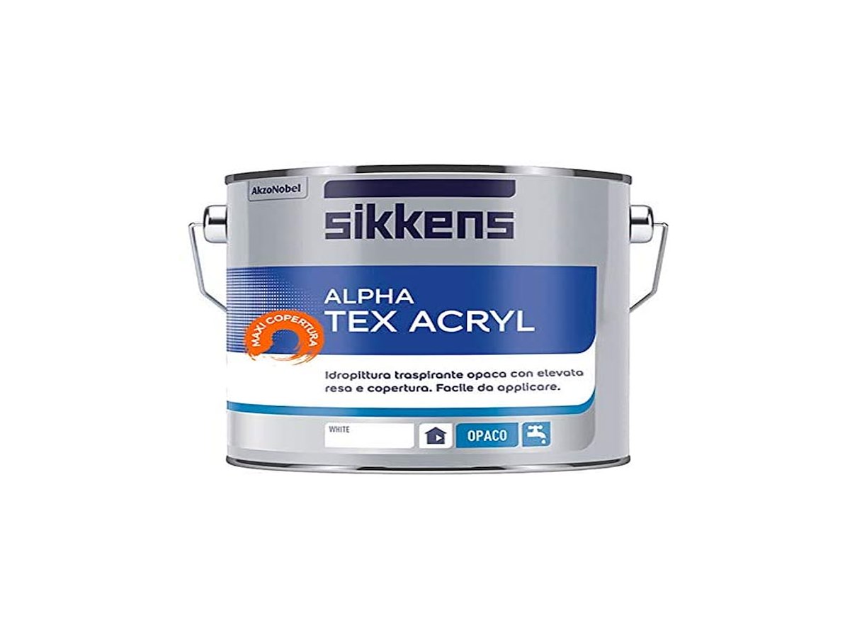 ALPHA TEX ACRYL BIANCO LT 15 SIKKENS IDROPITTURA TRASPIRANTE OPACA CON ELEVATA RESA E COPERTURA. FACILE DA APPLICARE