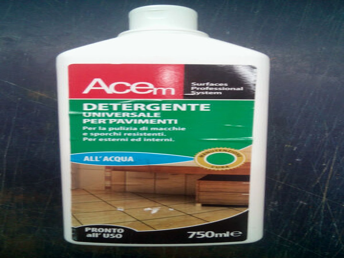 DETERGENTE UNIVERSALE PER PAVIMENTI ALL'ACQUA LT 1 ACEM un detergente sgrassante utilizzabile su tutti i tipi di materiali interni ed esterni per eliminare le macchie grasse e lo sporco dovuti all'inquinamento atmosferico ed industriale. Non modifica l'aspetto né la natura dei supporti trattati. Per eliminare lo sporco è sufficiente asciugare o risciacquare senza lasciare essiccare. Ideale per pulire calcestruzzo, cemento, pietra naturale o ricostruita, terrecotte, piastrelle gres porcellanato, marmo, ecc. Ideale per trattare terrazze, bordi di piscina, aree di barbecue, cucine e tutti i pavimenti costituiti da materiale poroso. Sistemi applicativi: getto a bassa pressione (tipo spruzzatore di giardino), pennello rullo o spugna. Resa: a titolo puramente indicativo: 10-20 m2/l.