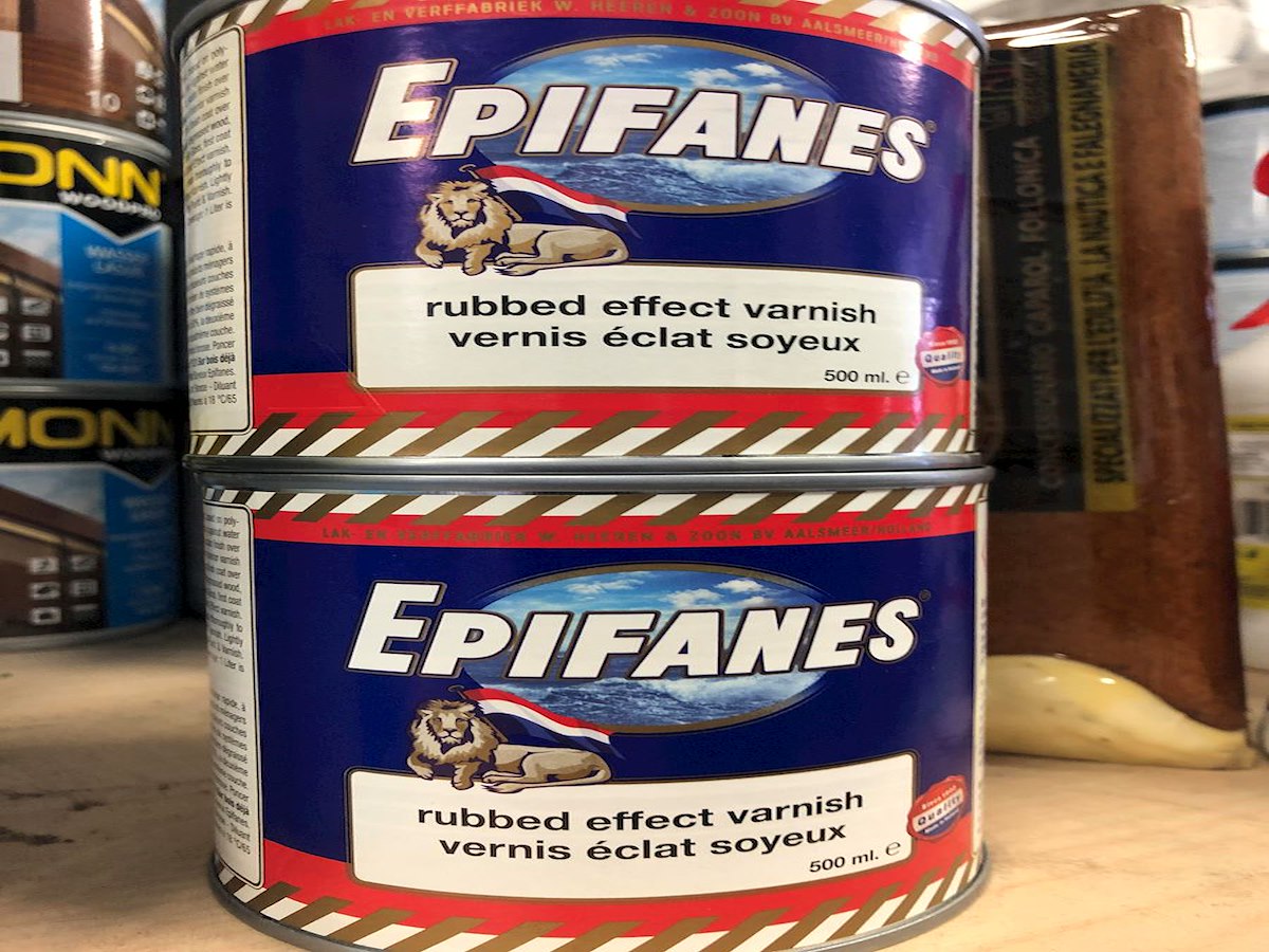 EPIFANES RUBBED VARNISH 0.5 LT VERNICE TRASPARENTE SATINATA Vernice trasparente monocomponente satinata a rapida essicazione per finiture interne.Con ottima resistenza ad alcool e ai normali detersivi casalinghi.Si applica come finitura dopo le necessarie mani di Epifanes Clear Gloss. Applicazione: Diluzione: Spruzzo: Dil pv pennello Spray: Dil pv Spray Sovraverniciabile: 12h C°18 Resa 14 mt2/lt