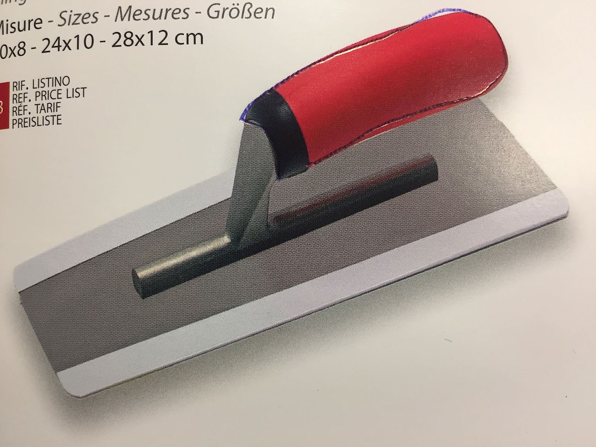 Frattone lama acciaio inox a trapezio, lama affilata da un lato, manico gomma ergonomico MISURE 24X11