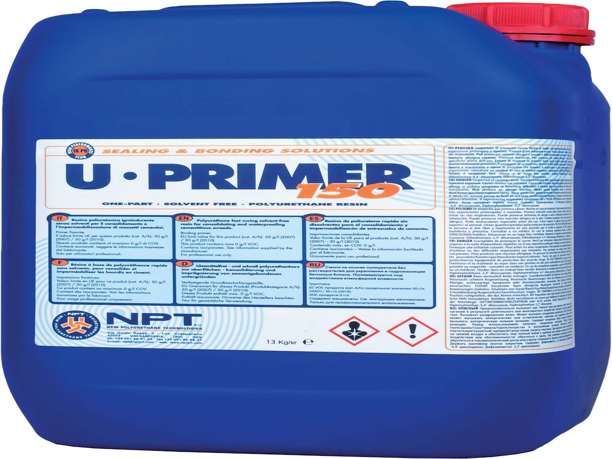 Resina poliuretanica indurente all'umidità - senza solventi - per il consolidamento e l'impermeabilizzazione di sottofondi polverosi e deboli; da utilizzare con adesivi NPT Poliuretanici o Epossipoliuretanici. UP 150: diluente specifico per U-Primer 150 e per la pulizia degli attrezzi degli adesivi U-Bond.