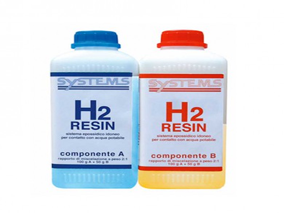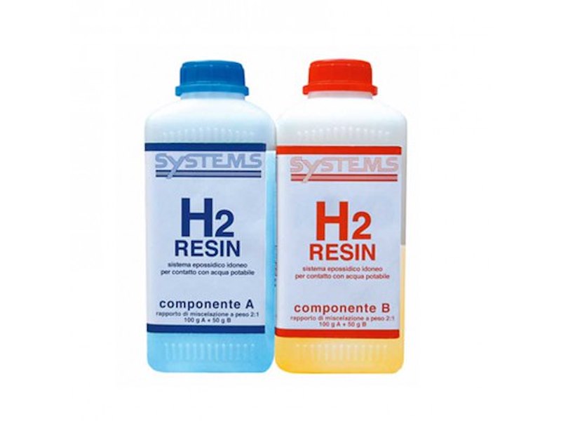 Resina epossidica omologata per la costruzione e la protezione dei serbatoi di acqua in vetroresina, legno, cemento e metallo. Rapporto di catalizzazione 2:1 in peso (100 gr di A + 50 gr di B) Confezioni da: 1,5