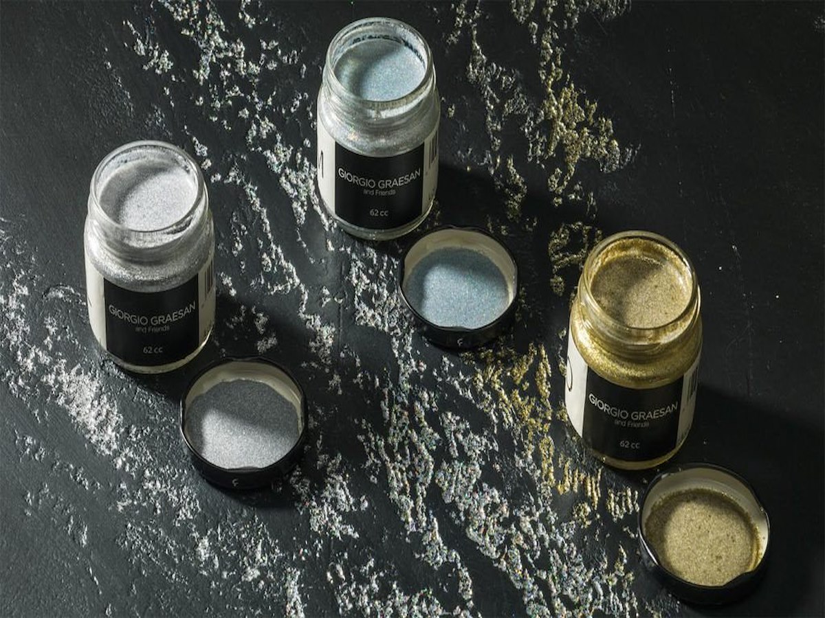 I Cristalli by Giorgio Graesan è l'additivo in glitter sviluppato per arricchire di toni brillanti la gamma dei decorativi GGF. Colorazione argento, confezione da 62 cc ADATTI PER ISTINTO PIETRA SPACCATA E TUTTI I DECORATIVI CHE RICHIEDONO BRILLANTINI