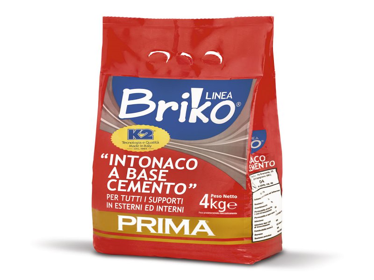 INTONACO CEMENTO KG 4 PRIMA CARATTERISTICHE: L’“intonaco a base di cemento” ed inerti selezionati della LINEA BRIKO K2 è un’ottima malta per il ripristino architettonico di murature interne ed esterne e per tutta una serie di lavori complementari. MODO D'USO: Prima di applicare il prodotto, assicurarsi che la superficie da trattare sia pulita e priva di polvere. Versare in un recipiente pulito 1 (una) parte di acqua e 3 (tre) di prodotto. Mescolare fino ad ottenere una malta omogenea, che vista la particolare resistenza ed elasticità, mantiene una perfetta lavorabilità anche dopo un considerevole intervallo di tempo dalla preparazione dell’impasto. DOVE SI UTILIZZA: Le ottime caratteristiche di plasticità, elasticità, lavorabilità, resistenza all’azione del gelo/disgelo lo rendono ideale per l’utilizzo nei lavori di muratura interna e esterna, quali: ripristino architettonico di intonaci degradati, finiture superficiali, riempimenti di sottotraccia e sigillature di elementi da copertura, riparazioni e piccoli interventi. L’intonaco cementizio non deve essere utilizzato per il ripristino di calcestruzzo strutturale. CONSIGLI PRATICI: Conservare le confezioni su pianali in legno, in luoghi asciutti, al riparo dall’umidità e da eventuali sgocciolamenti. AVVERTENZE D'USO: Non miscelare con gesso e/o prodotti a base gessosa. Utilizzare l’“intonaco base cemento” a temperature comprese tra i 5°C e 30°C. Tempo di lavorazione circa un’ora. Tempo di inizio presa circa un’ ora. Tempo di fine presa circa 15 ore.