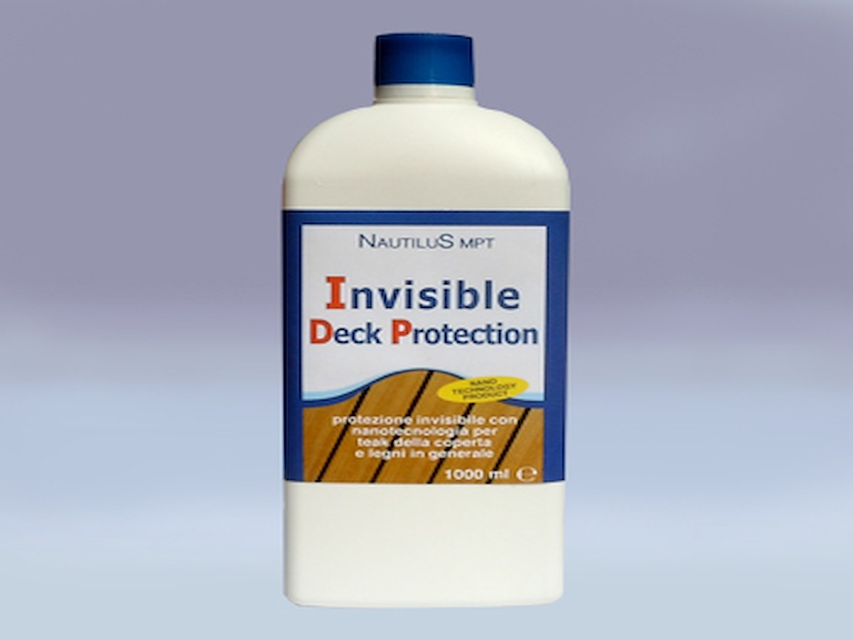 Invisible Deck Protection è un liquido a base d’acqua specifico. Protegge, senza alterarne il colore, il teak della coperta e altri tipi di legno che sono mantenuti al naturale senza olio o vernice. Prima dell'applicazione pulire perfettamente con Teak & Wood Cleaner, se necessario ripetere l’operazione più volte per ottenere una superficie dal colore omogeneo. Invisible Deck Protection deve essere applicato su legni perfettamente asciutti. Invisible Deck Protection è a base di prodotti nanotecnologici, forma una barriera invisibile che respinge l'acqua e lo sporco. Invisible Deck Protection, sfruttando la nanotecnologia, riesce a saturare i pori del legno senza creare spessore favorendone la traspirazione. Non ha odore, non è infiammabile e non contiene solventi. Istruzioni: Evitare l’applicazione in pieno sole e/o con superficie troppo calda. Si applica bagnato su bagnato senza farlo asciugare per impregnare profondamente il legno. Utilizzare preferibilmente il rullo, per gli spazi stretti è consigliabile l’uso del pennello. Per ripristinare la protezione di una superficie che è stata trattata in precedenza con Invisible Deck Protection, si procede sciacquando generosamente con acqua dolce o lavando con Nautilus Boat Cleaner o Teak & Wood Cleaner la zona interessata; una volta asciutta si farà un ulteriore trattamento di impermeabilizzazione.