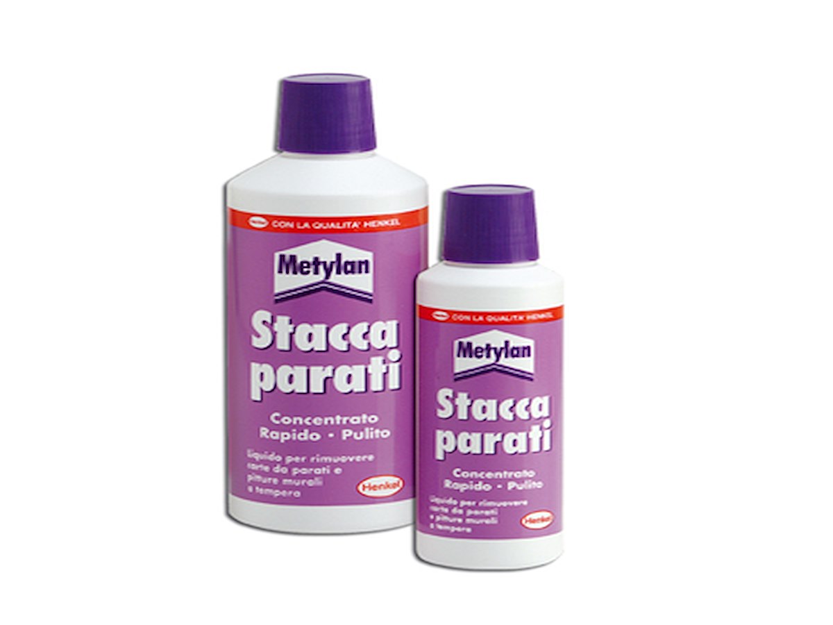 Liquido distaccante per rimuovere facilmente carte da parati e asportare pitture murali e tempera.