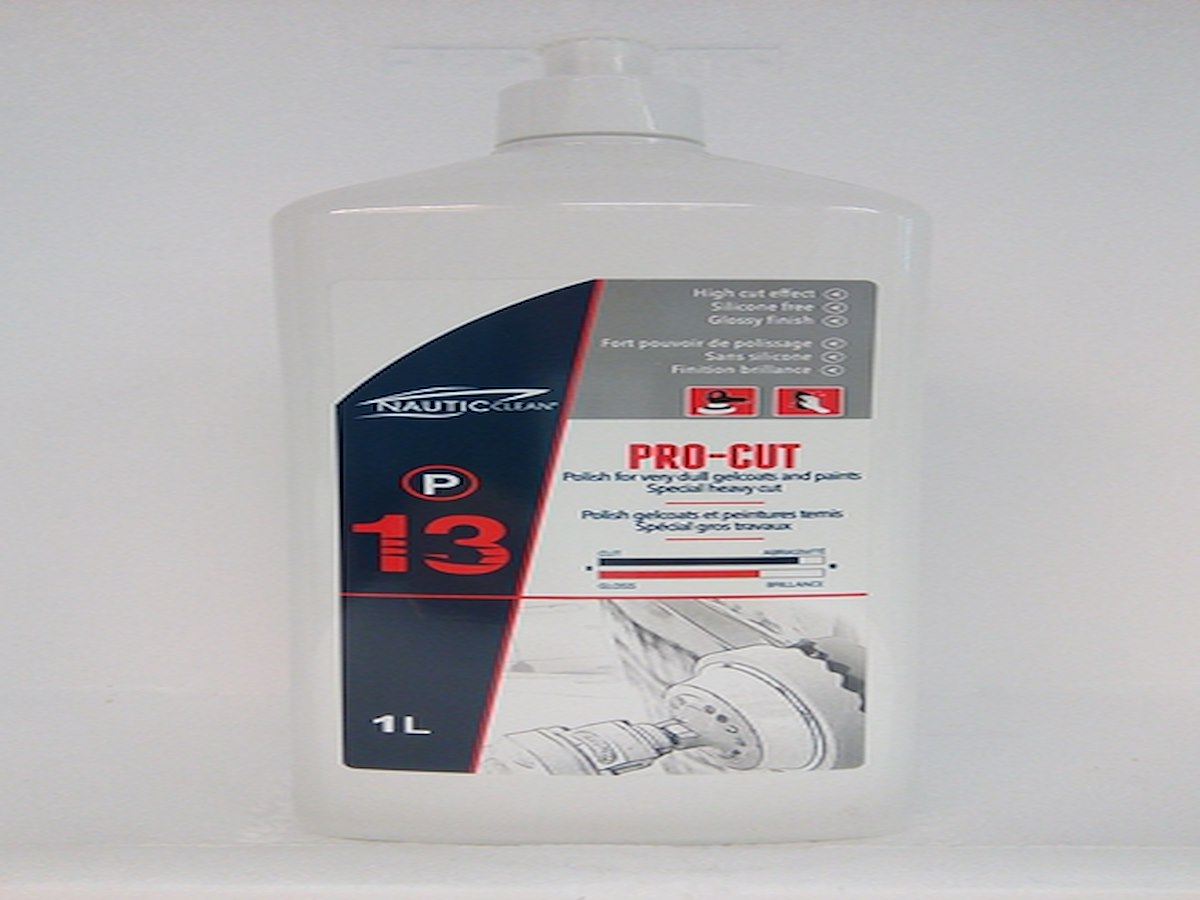 Nautic Clean 13 pro cut Polish professionale di nuova generazione a base di microcristalli abrasivi POLYGRADTM. Concepito per grandi lavori e superfici smerigliate, P13 PRO-CUT è indicato per la lucidatura di gelcoat farinoso, poroso, e per vernici molto opache.