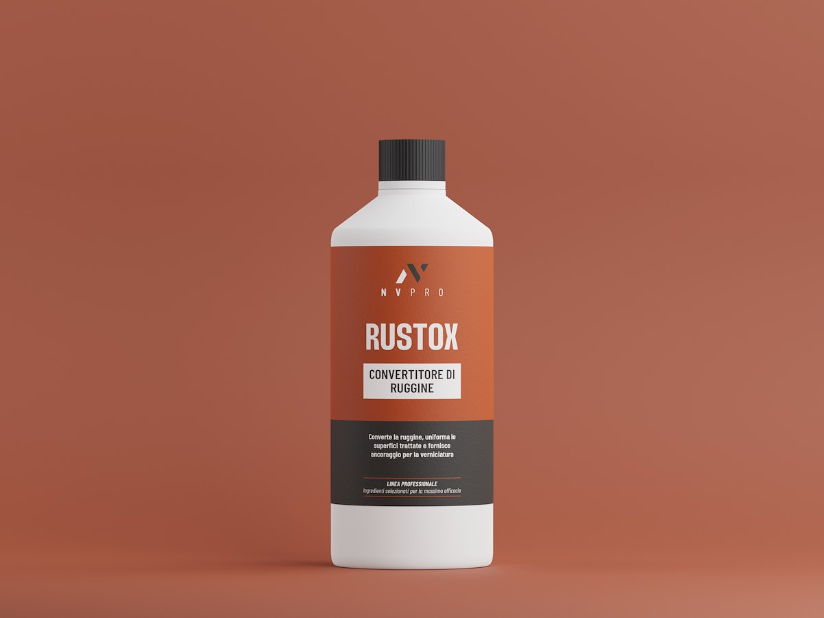 Convertitore chelante a base acquosa, penetra facilmente nei materiali reagendo in modo rapido e convertendo la ruggine in un composto insolubile di colore nero opaco. Applicato a pennello per favorire la penetrazione del prodotto, in un massimo di 3 ore forma uno strato insolubile in acqua che protegge da future ossidazioni e costruisce una eccellente base di ancoraggio per la verniciatura. RUSTOX può essere utilizzato su ferro e metalli. Non danneggia le superfici verniciate, cromate e le materie plastiche.