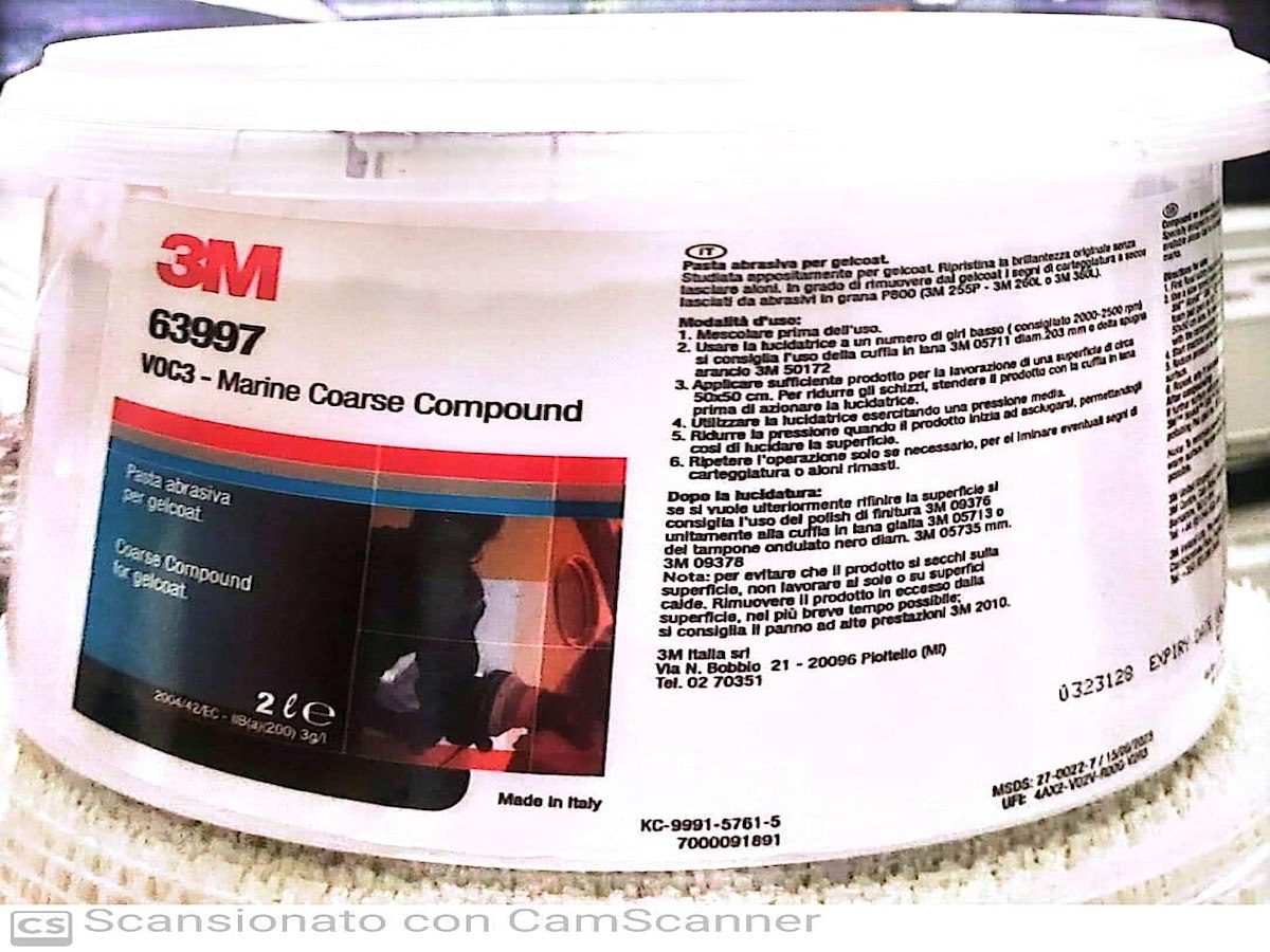 La pasta abrasiva 3M VOC 3 Marine Coarse Compound si caratterizza per il taglio aggressivo e veloce e l'eccellente finitura senza aloni.