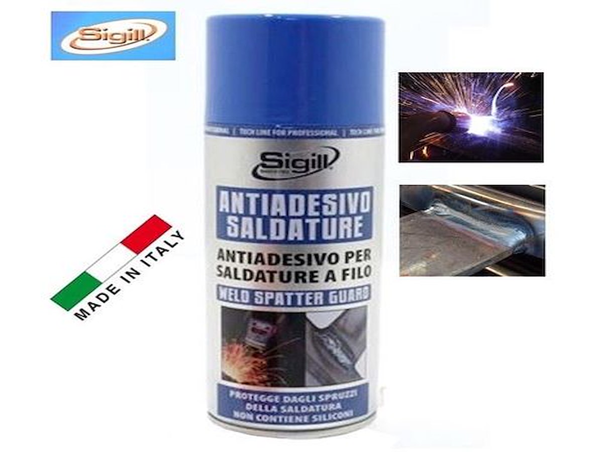 SILICONE SPRAY LUBRIFICANTE 400 ML SIGILL ANTI ADESIVO SPRAY PER SALDATURE A FILO SENZA SILICONE 400mlPROTEGGE DAGLI SPRUZZI DELLA SALDATURA.PRODOTTO TECNICO SPRAY, AD USO PROFESSIONALE, AVENTE FUNZIONE PROTETTIVA ED ANTIADESIVA.NON CONTIENE COMPONENTI DI NATURA SILICONICA.IL PRODOTTO GARANTISCE LA FORMAZIONE DI UNA PELLICOLA TRASPARENTE CHE INIBISCE L'ADESIONE DELLE GOCCE DI SALDATURA SU SUPERFICI METALLICHE EVITANDO POSSIBILI CORROSIONI DA PARTE DI AGENTI CHIMICI.L'ASSENZA DI COMPONENTI SILICONICI GARANTISCE CHE NON VI SIANO INTERFERENZE CON EVENTUALI TRATTAMENTI SUCCESSIVI (COME PER ESEMPIO LA VERNICIATURA).BOMBOLETTA SPRAY DA 400ml