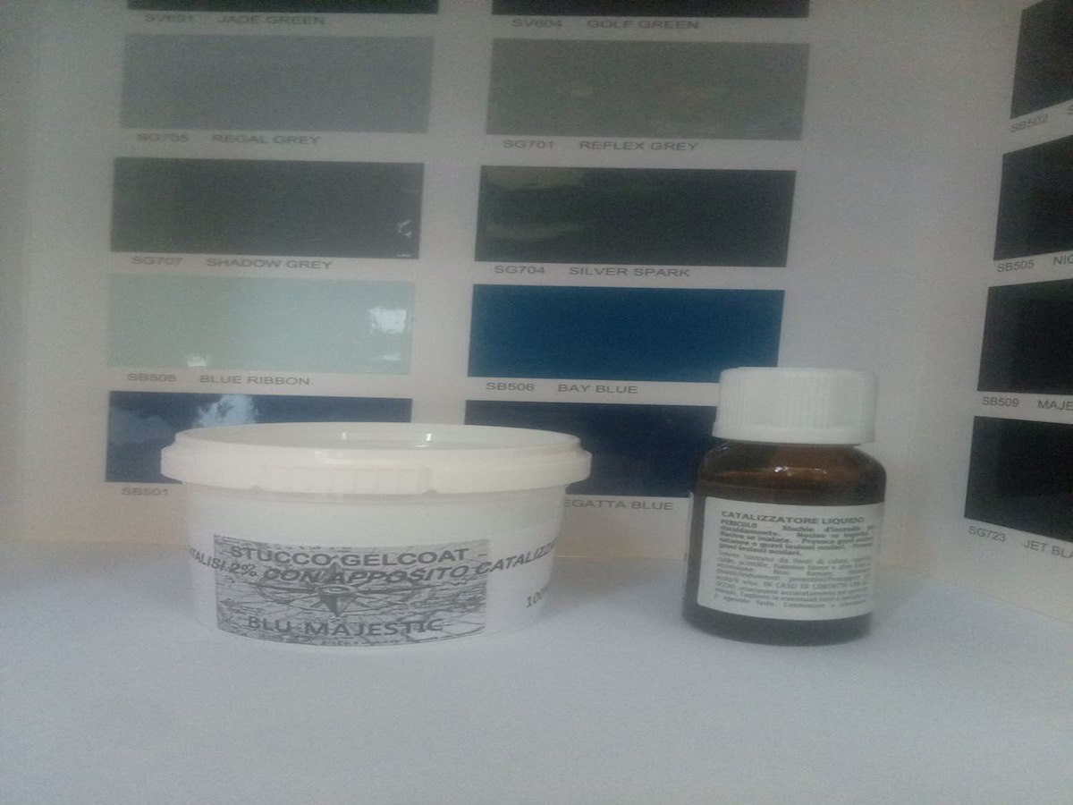 STUCCO A GELCOAT BICOMPONENTE PER PICCOLE RIPARAZIONI SU IMBARCAZIONI O ALTRO. COMPOSIZIONE IN POLIESTERE, CATALIZZATO AL 2% CON APPOSITO CATALIZZATORE LIQUIDO, TEMPO DI ESSICCAZIONE - 24ORE DISPONIBILE NEI COLORI: BLU MAJESTIC BIANCO CREMA