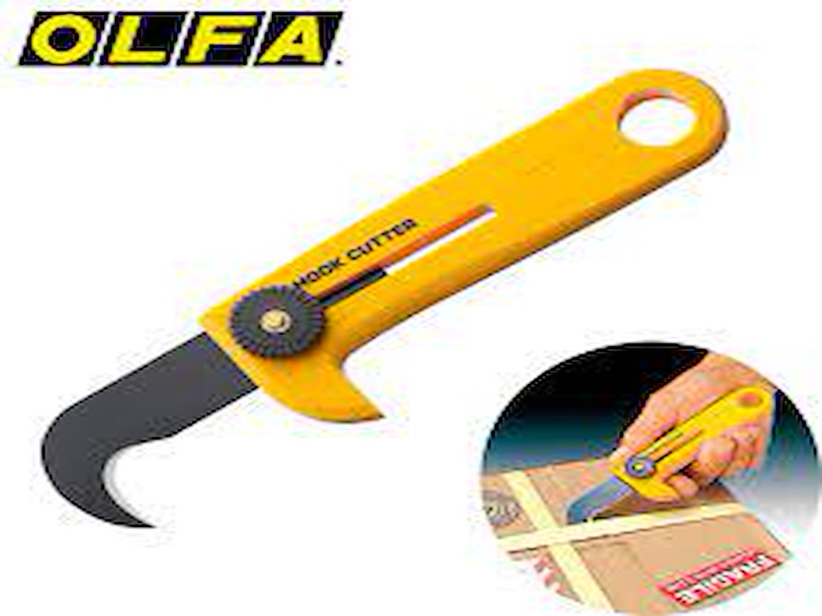 TAGLIERINO CUTTER PER COPERTE ACCIAIO INOX Lama Tonda 39,5mm Imballaggio HOK-1 Olfa. Taglierino Cutter Lama Tonda 39,5mm Imballaggio HOK-1 Olfa Ideale per il taglio di regge in plastica, cartonaggi, carta catramata. Corpo in resina termoplastica pesante. Sistema di bloccaggio lama a vite, inseribile sui due lati. Per uso ambidestro. Lama ad uncino brunita e riaffilabile IDEALE PER TOGLIERE LA GOMMA DAI COMENTI DELLE BARCHE