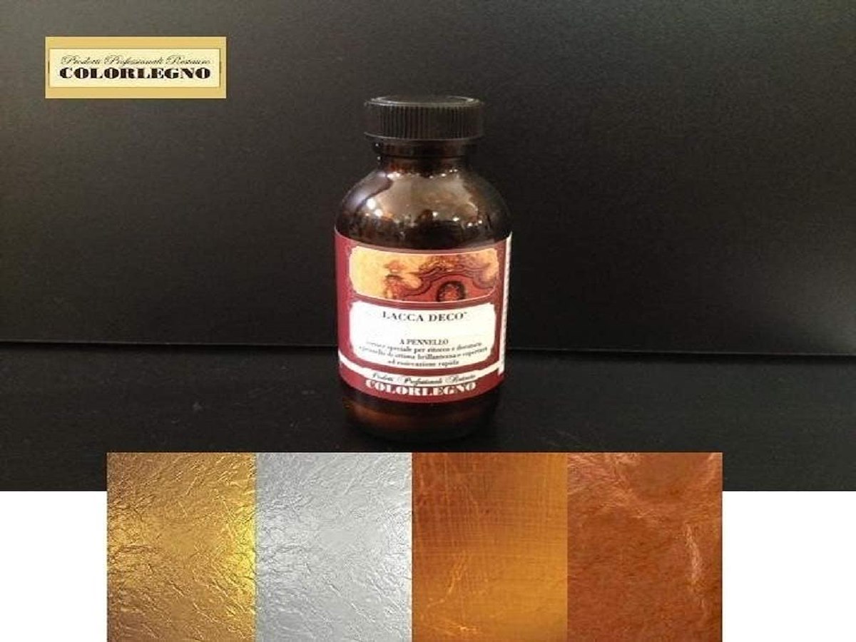 Speciale vernicietta per dorature a pennello Facilissima da applicare Splendida vernice metallica, di rapida essiccazione, facile applicazione, alta copertura, speciale per arti decorative, in pittura, decorazioni di interni, stucchi, mobili, cornici per quadri, vetrinistica, sculture, arte in ferro, ecc. Si consiglia di applicare su fondi compatti e ben levigati, non unti e non cerati ( con pennelli morbidi per belle arti), possono essere applicate più mani in modo da ottenere più distensione e compattezza di superficie. Per applicazioni a spruzzo diluire con l'apposito diluente quanto basta. E' consigliabile una leggera protezione con l'apposito fissante specialmente ove si debbano eseguire patinature di imitazione o invecchiamenti artificiali vari.